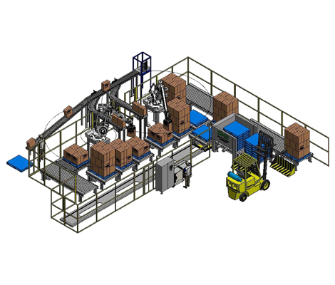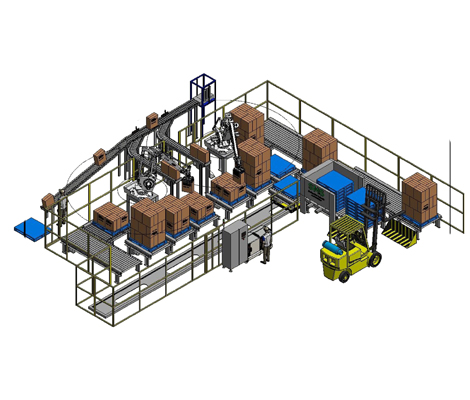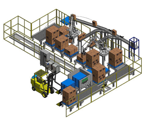 Flexible articulated industrial robotic system to handle palletizing of carton box. Robot capacity up to 11 cycle / minute.